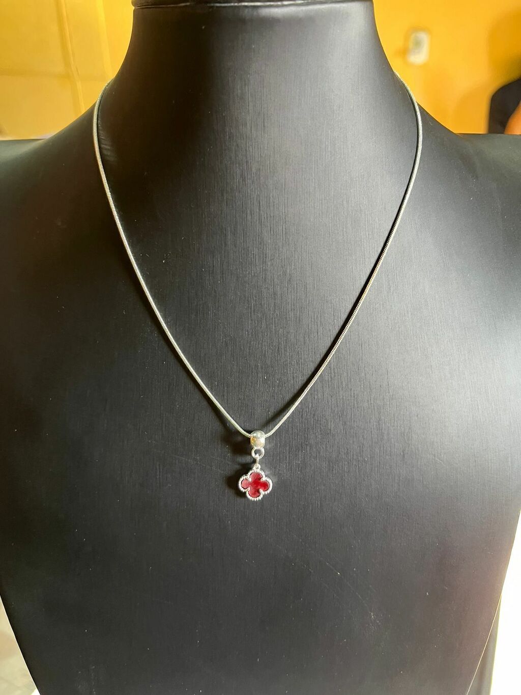 ✨ Colar Feminino com Pingente Trevo Vermelho (42cm) ✨